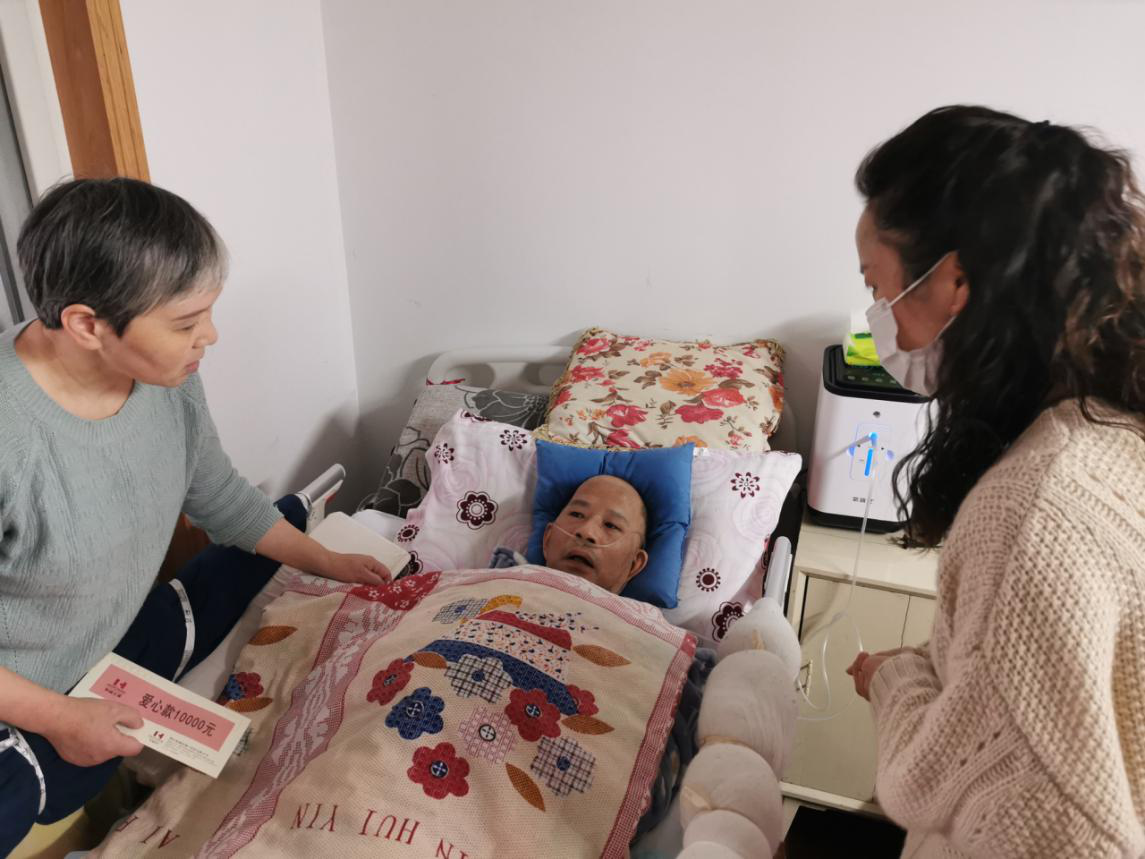 据悉,薛师傅一家生活清贫,膝下女儿常年患病,生活不能自理。近段时间薛师傅又因脑部意外,先后手术两次,相关费用耗去三十余万,如今因为费用紧张只能回家休养,这一系列的变故对他们来说简直是雪上加霜。此时,首佳顾问浙江和诚党支部及时了解薛师傅家的困难,行雪中送炭的大爱之举,在他们一家极度困难的时候送上爱心善款一万元整和相关慰问品。