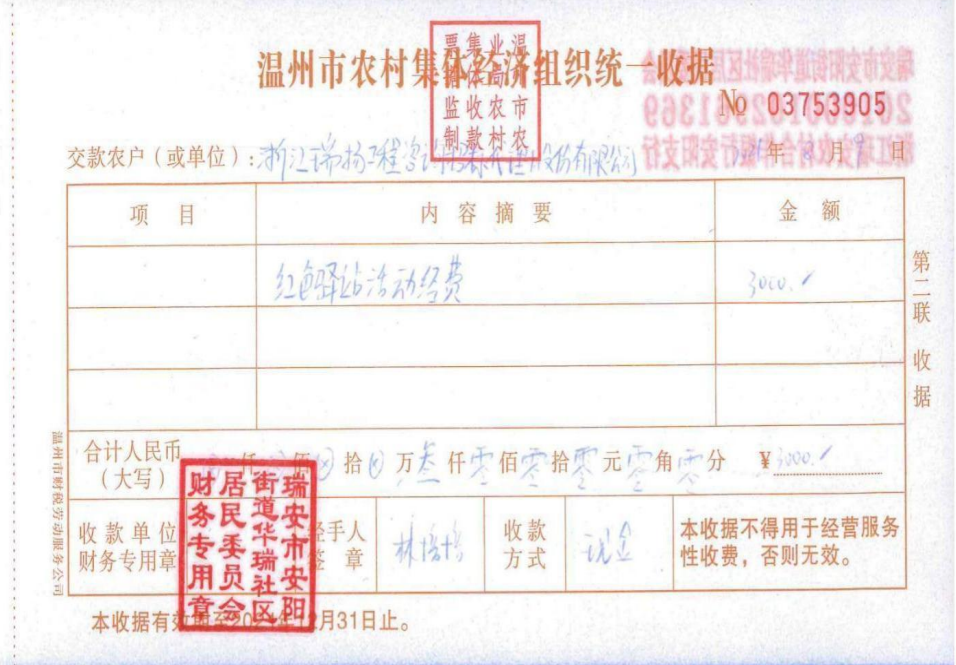 5、2021年8月9日瑞扬公司联合党支部捐赠红色驿站活动经费3000元。