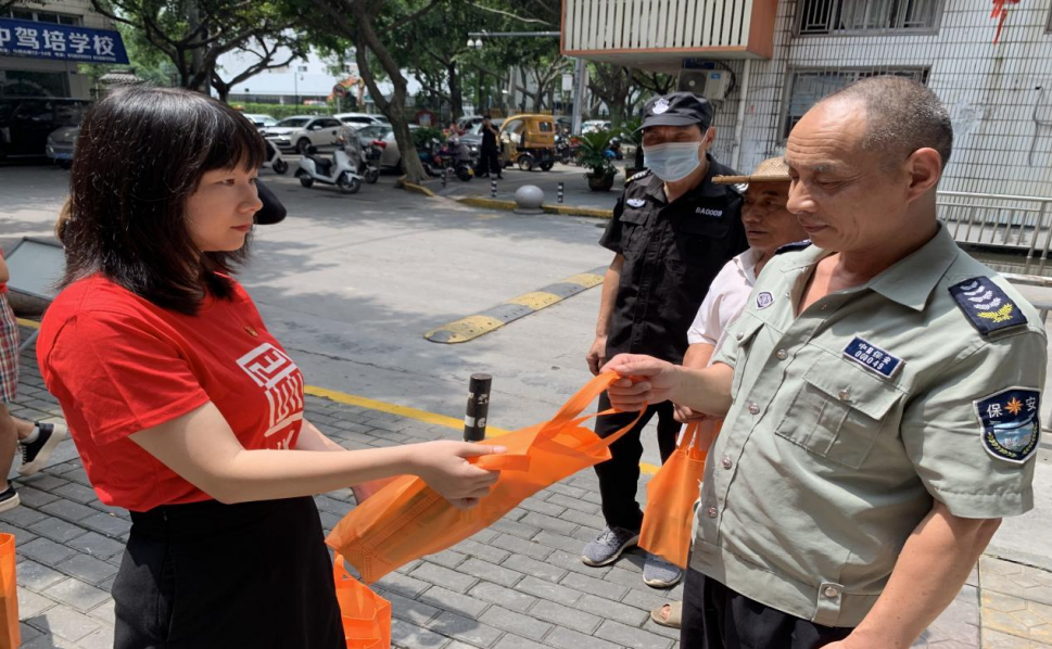 7、2021年9月10日,公司慰问辛勤工作在高温一线的保安员,为他们送去防暑降温物品,并嘱咐他们增强自我?;ひ馐叮踩裙崾?。