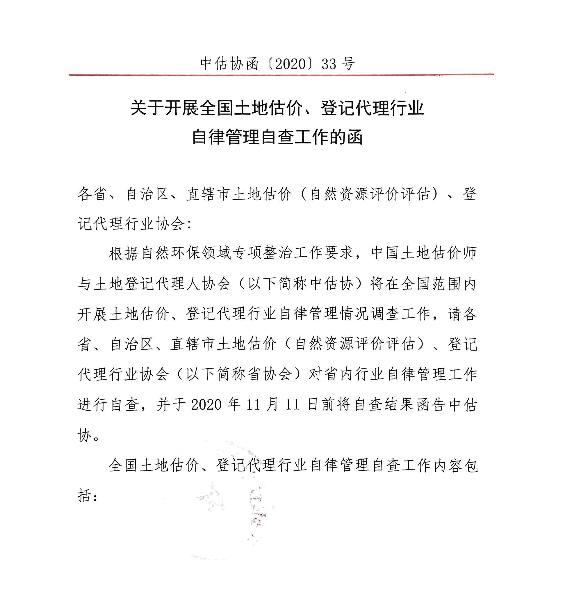关于开展行业自律管理自查工作的函